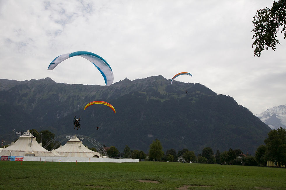 On the way to the market, I sat and watched the paragliders come falling down onto the grassy area of the Höhematte. It is mostly the Asian and Arab tourists whom keep the paragliding companies in business. I may be wrong, though. And.... there are quite a few companies vying for that business. The whole flight experience is filmed. Great to see their expressions when they see a short clip of their flight.