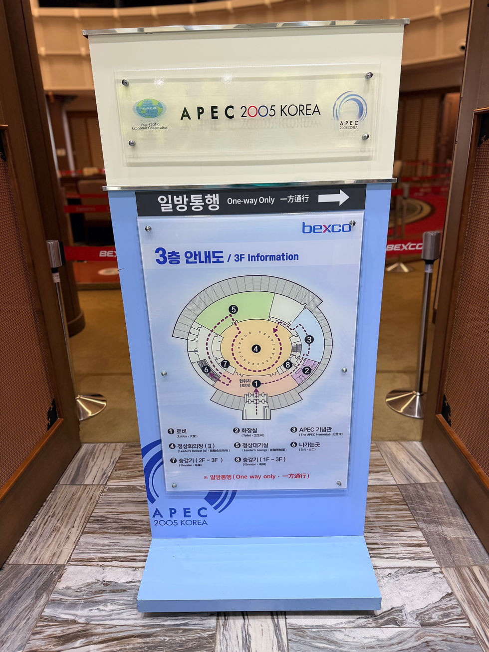 Nurimaru APEC House. Located on Dongbaekseom Island, an island of camellia trees, Nurimaru APEC House was the venue for the 2005 APEC Summit. Since then, it has been used as a memorial hall and a conference center. This three-story building is a contemporary recreation of a traditional Korean pavilion. The roof is inspired by the slope of Dongbaekseom Island, while the interior design features visual representations of traditional Korean culture. The terrace provides a great view of the Oryukdo Islets, Gwangandaegyo Bridge, and Dalmaji Hill. Visitors to Nurimaru APEC House can enjoy both the beauty of nature and the contemporary design of the building.
