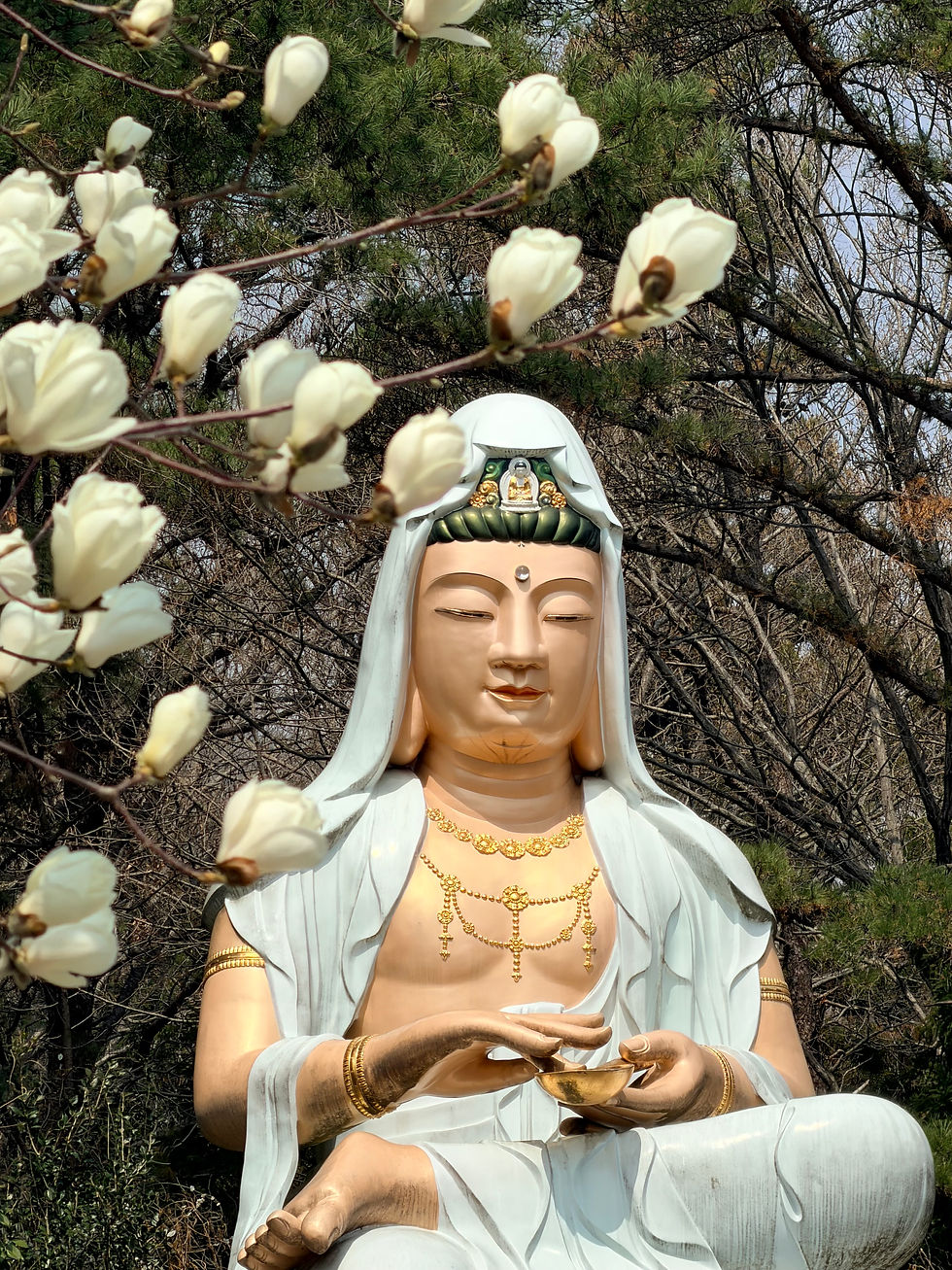 Around the temple is a mass of wild wisteria, consisting of over 6,500 plants. The wisteria bloom a vibrant lavender color in late spring. This area has thus historically been called "Deungungok" "Wisteria Blossom Valley". I can only imagine what that must be like. Today I saw cherry and magnolia blossoms.
