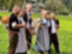 After the cows pass by, some people follow to the festival. There is music, cheese for sale, and food to eat.