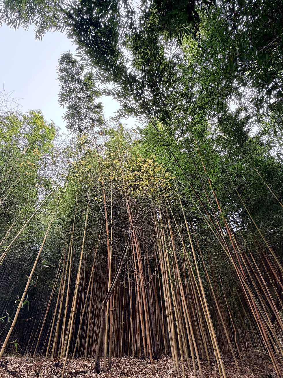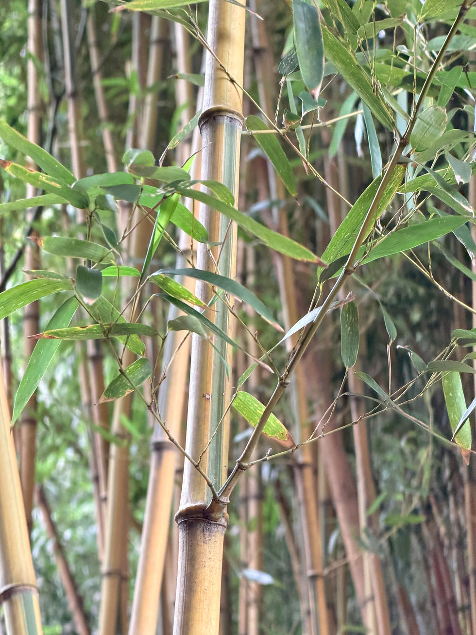 The manager stopped to talk with us. He explained, for these bamboo, there is a green section and a golden section. The leaves only sprout out from the green section.