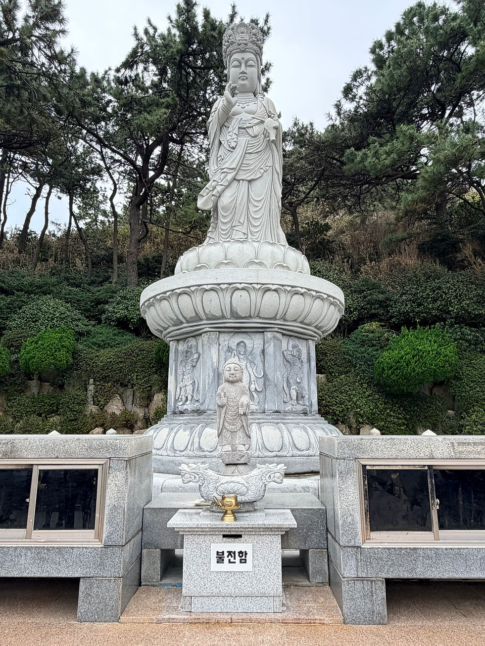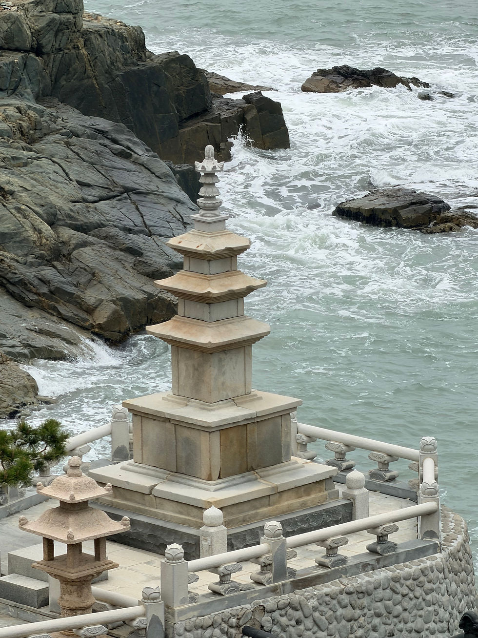 The temple by the sea in Busan is called Haedong Yonggungsa Temple. It is a stunning Buddhist temple located on the coast, known for its picturesque views of the ocean and its unique architectural features.